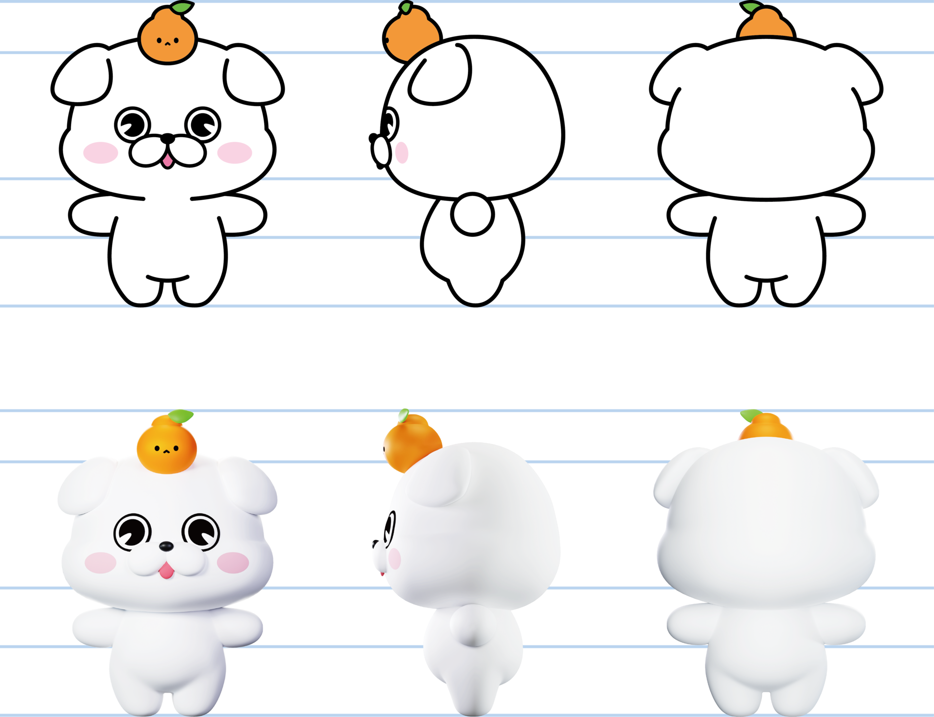 제주 굿즈 상품 제작을 위한 디자인으로 캐릭터의 다양한 포즈, 표정, 디테일 등을 구체화하여 일러스트 작업 진행해 드렸으며, 캐릭터의 3D 구현까지 완성해 드렸습니다.