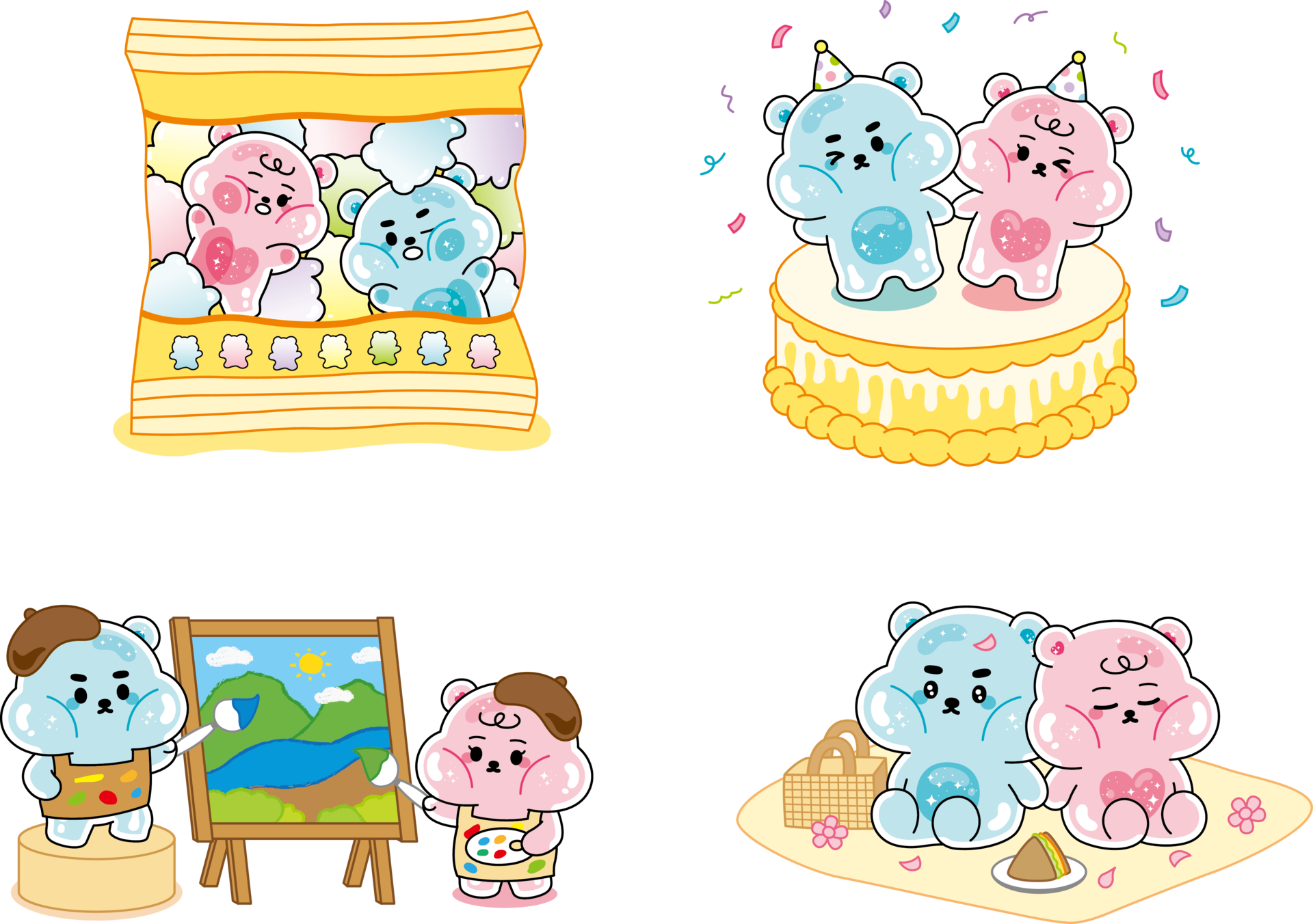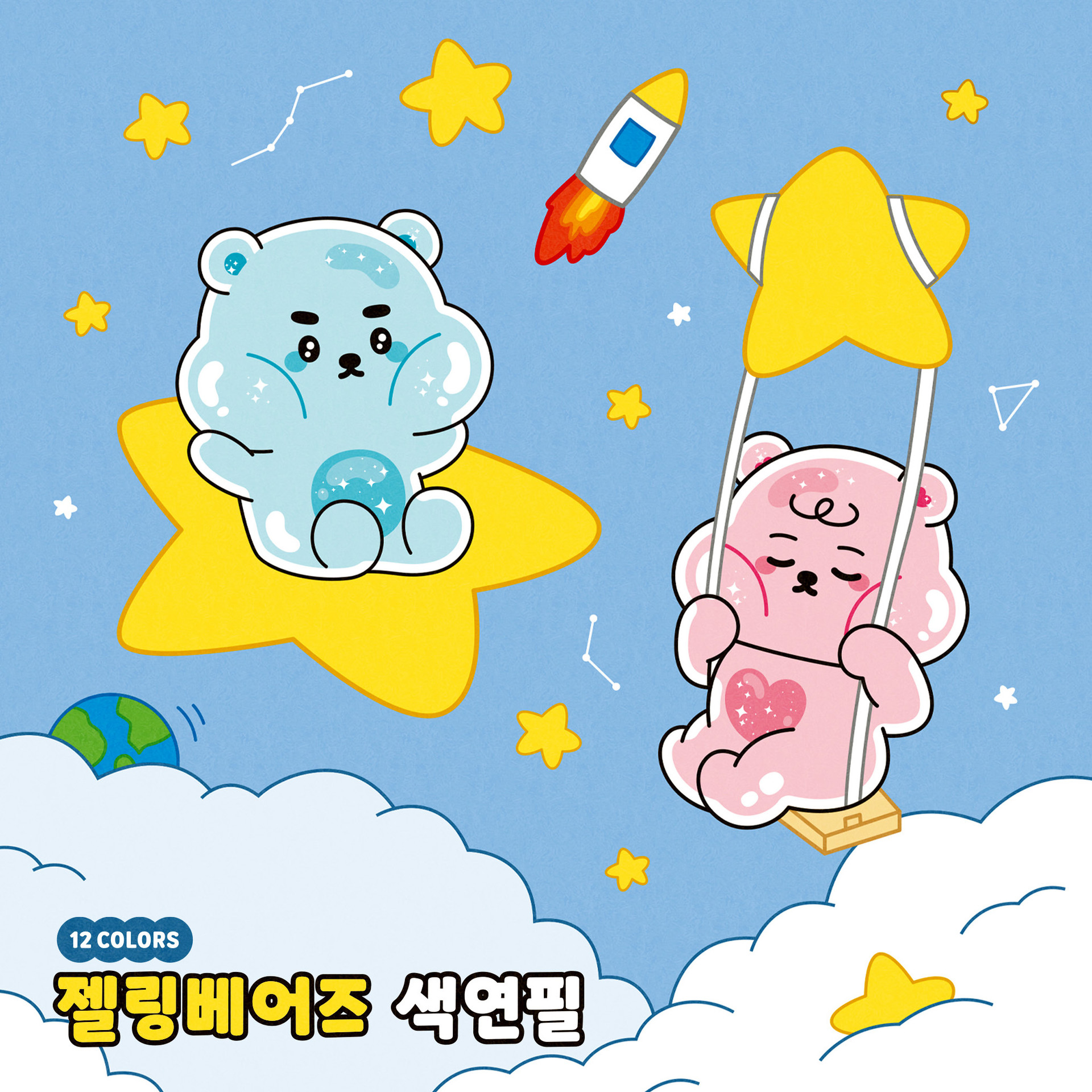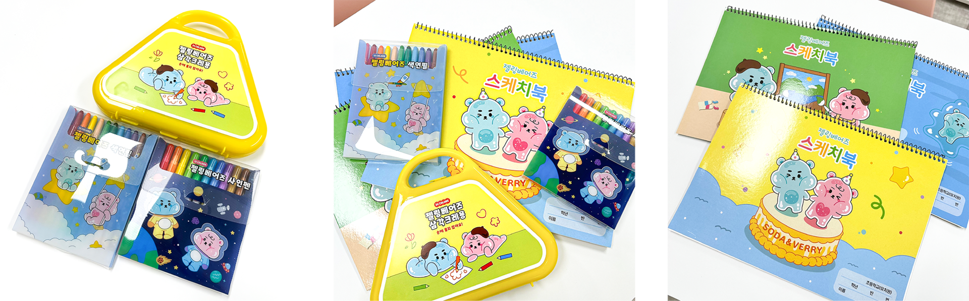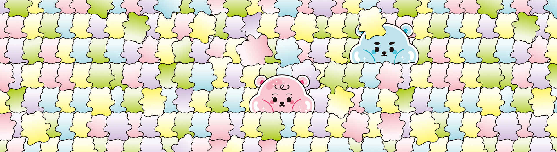 화신문구상사와 함께한 사랑스러운 젤리곰 커플, 젤링베어즈입니다. 화신문구상사는 어린이들을 위한 문구용품들을 제작하는 업체로, 어린이들의 동심과 호기심을 유발하기 위해 젤리의 형태를 지닌 젤링베어즈 소다와 베리를 제작했습니다.