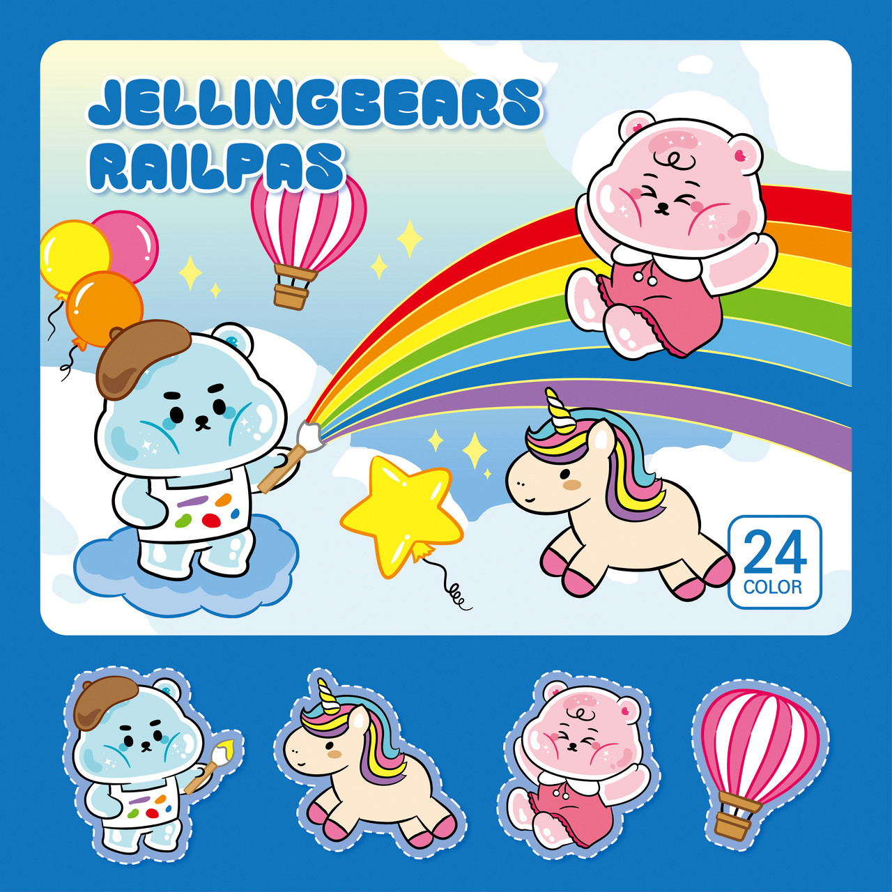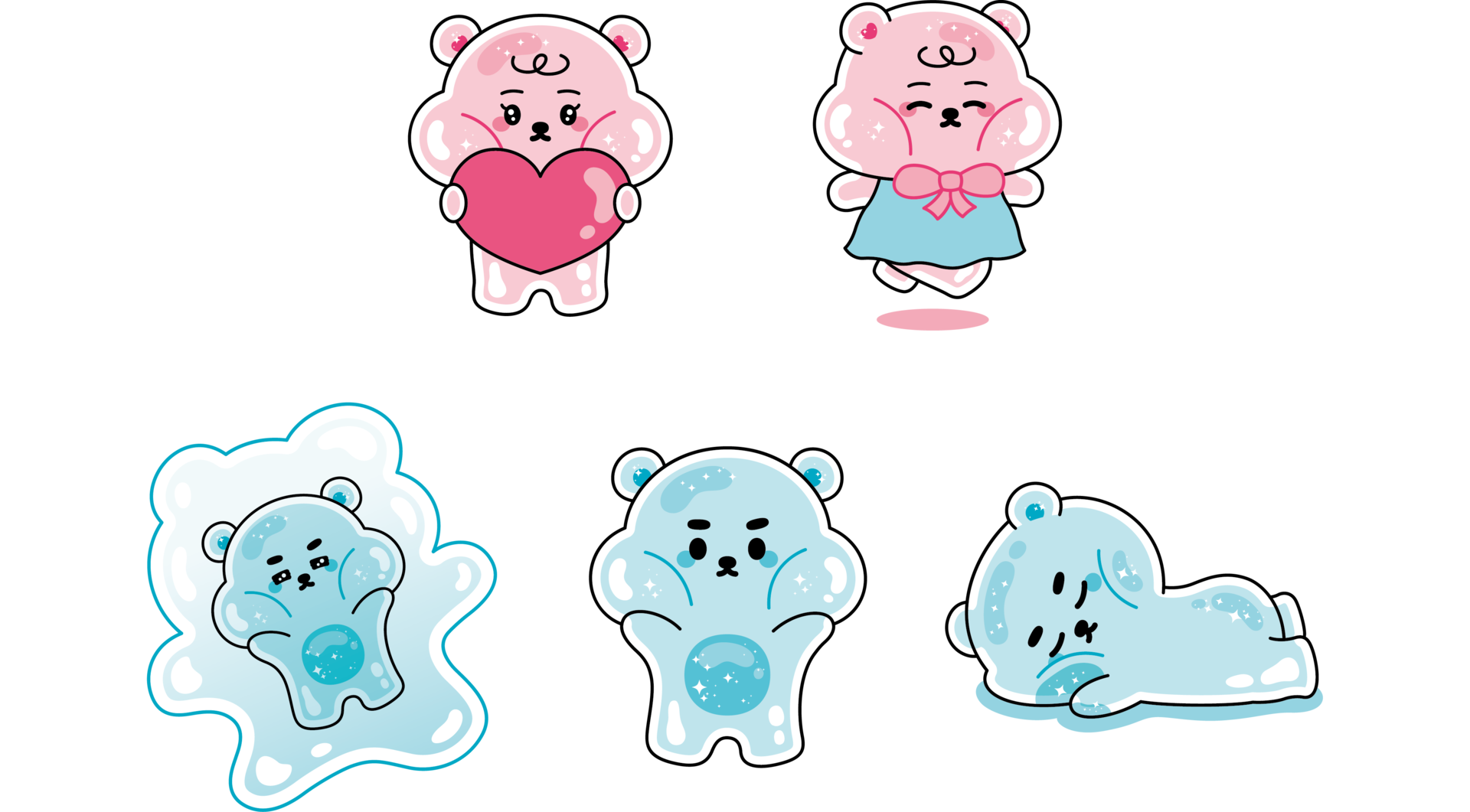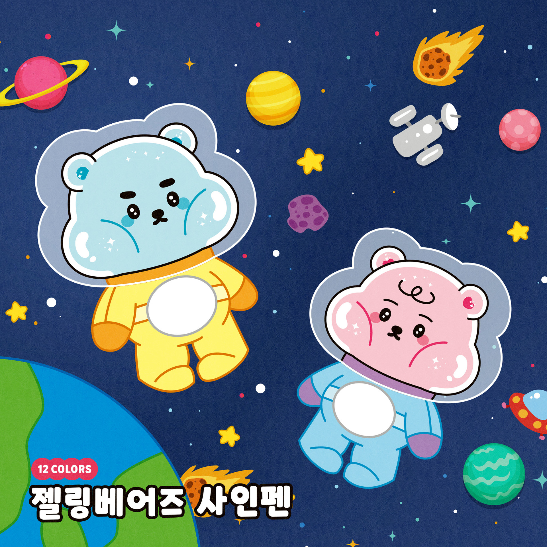 화신문구상사와 함께한 사랑스러운 젤리곰 커플, 젤링베어즈입니다. 화신문구상사는 어린이들을 위한 문구용품들을 제작하는 업체로, 어린이들의 동심과 호기심을 유발하기 위해 젤리의 형태를 지닌 젤링베어즈 소다와 베리를 제작했습니다.