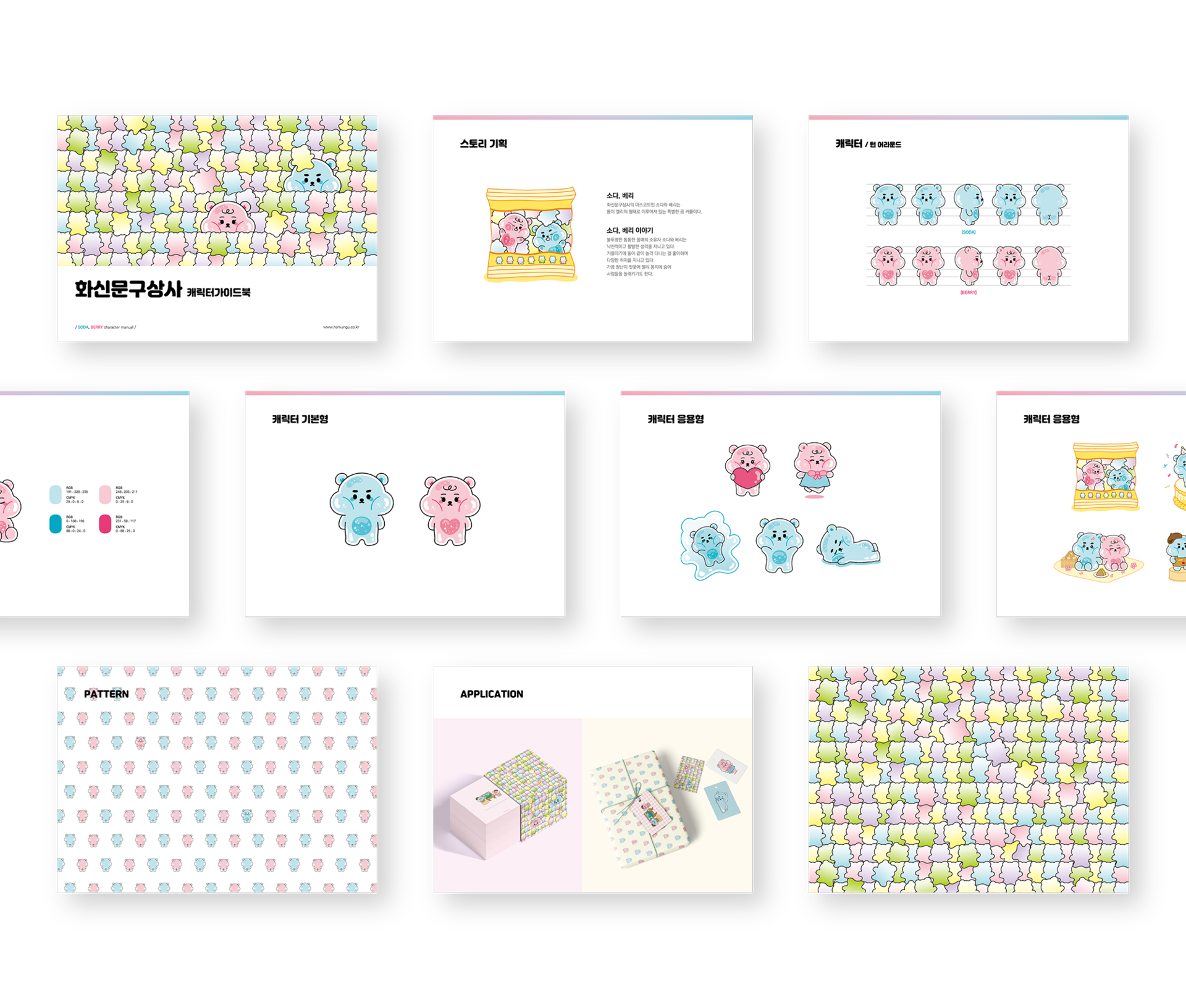 화신문구상사는 어린이들을 위한 문구용품들을 제작하는 업체로, 어린이들의 동심과 호기심을 유발하기 위해 젤리의 형태를 지닌 젤링베어즈 소다와 베리를 제작했습니다.