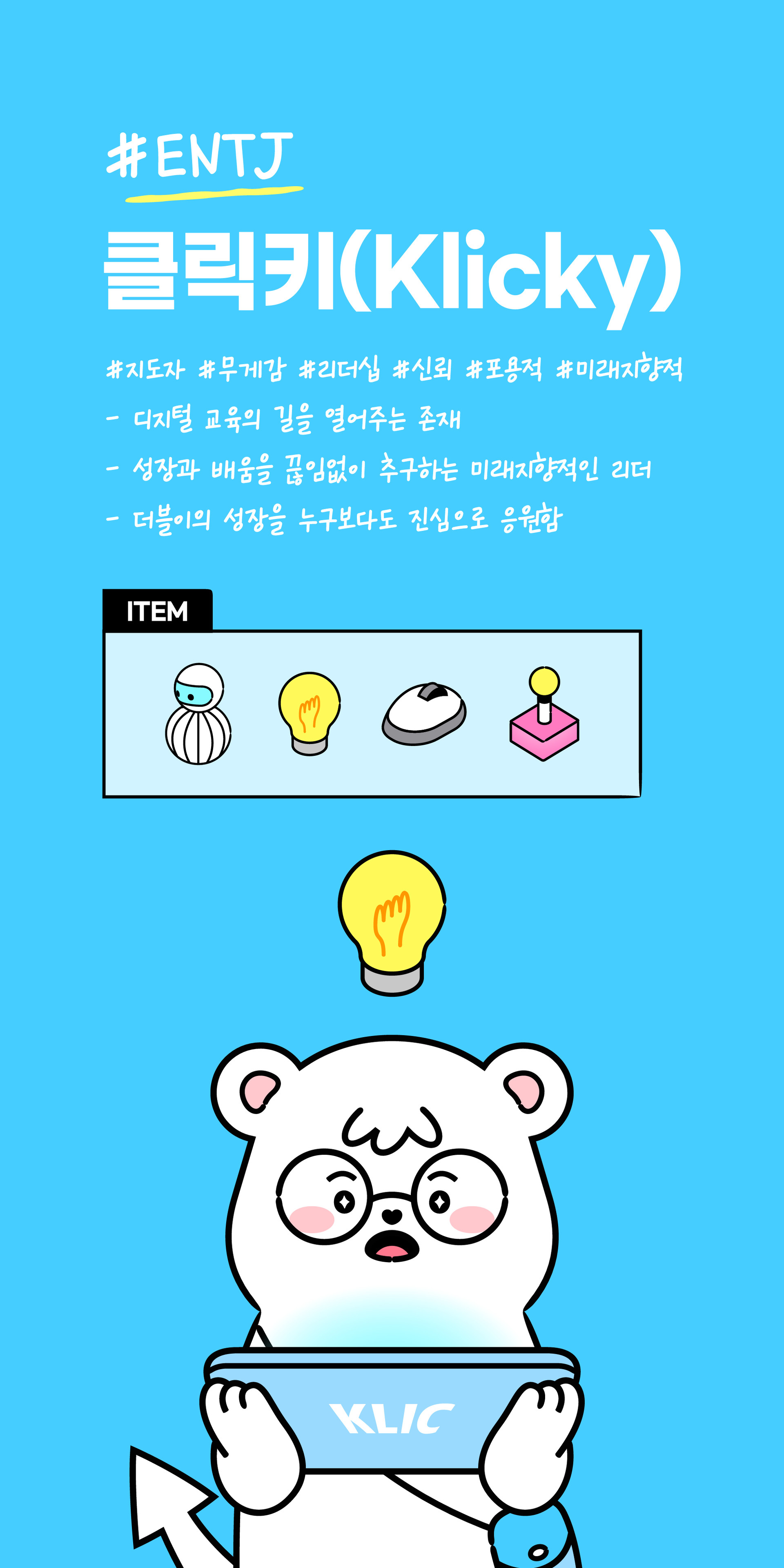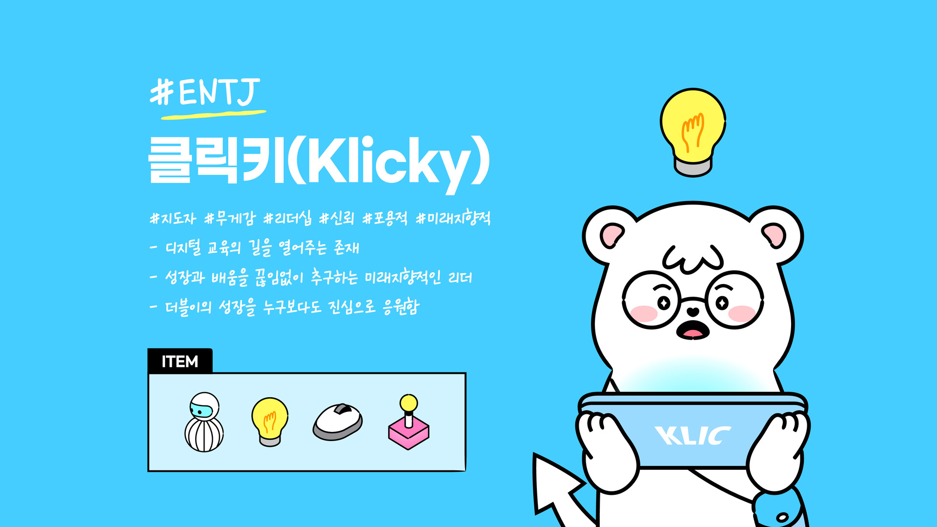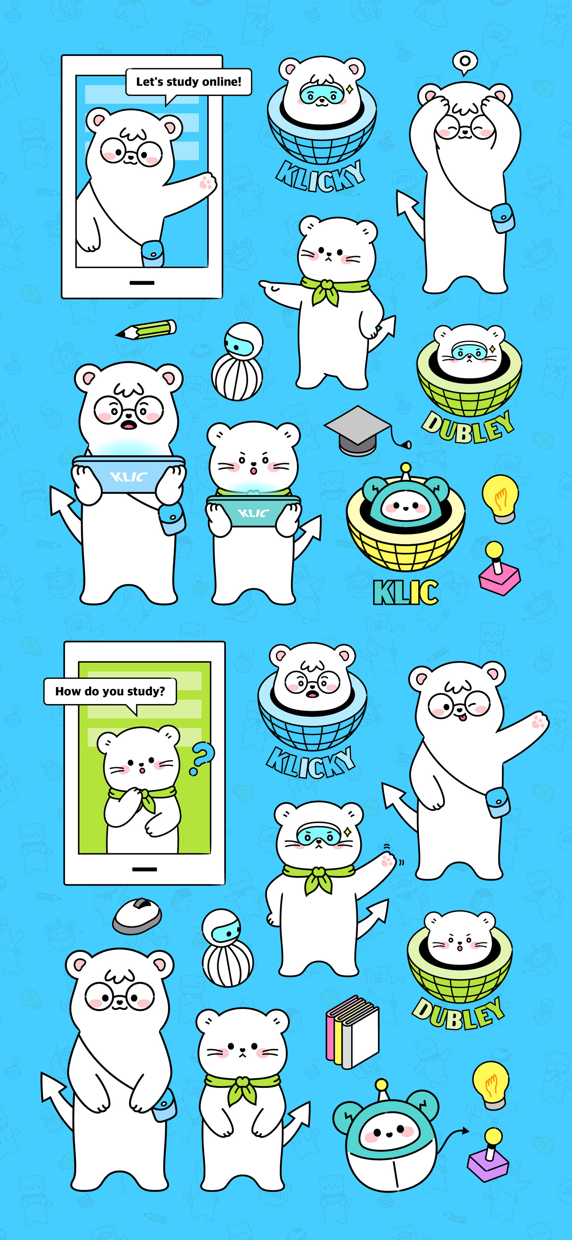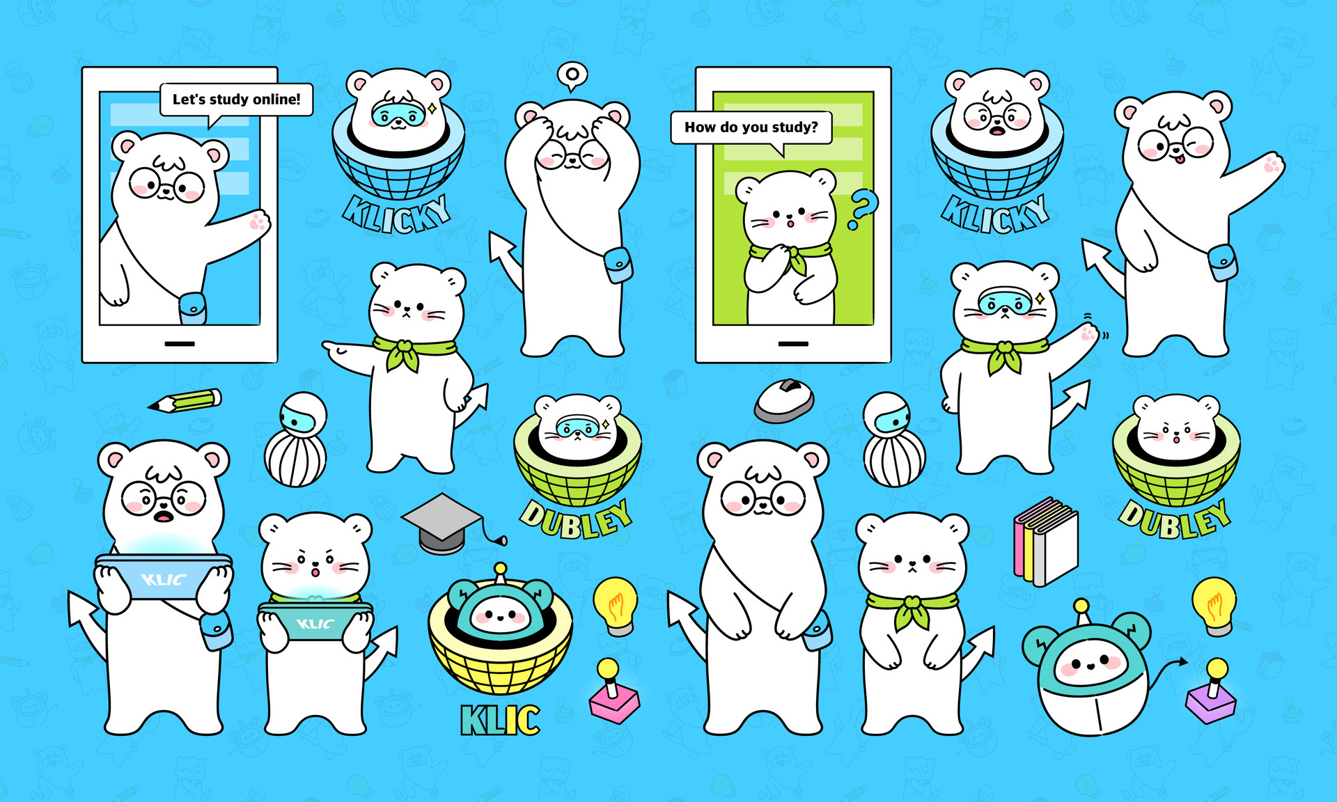 한국 교육부가 총괄하며 APEC국제교육협력원이 추진하는, 교류협력국 디지털 교육 지원사업(KLIC)의 캐릭터 개발 프로젝트를 진행하였습니다. KLIC(클릭)은 교육부의 디지털 교육 세계화 사업의 일환으로 추진되는 지원사업으로, 한국이 디지털 교육 선도국으로서 국제사회에 기여하고자 시작된 프로젝트입니다. 교류협력국이 디지털 교육을 보다 쉽게 이해하고 학습할 수 있도록, 이를 안내하는 캐릭터를 개발하였습니다.