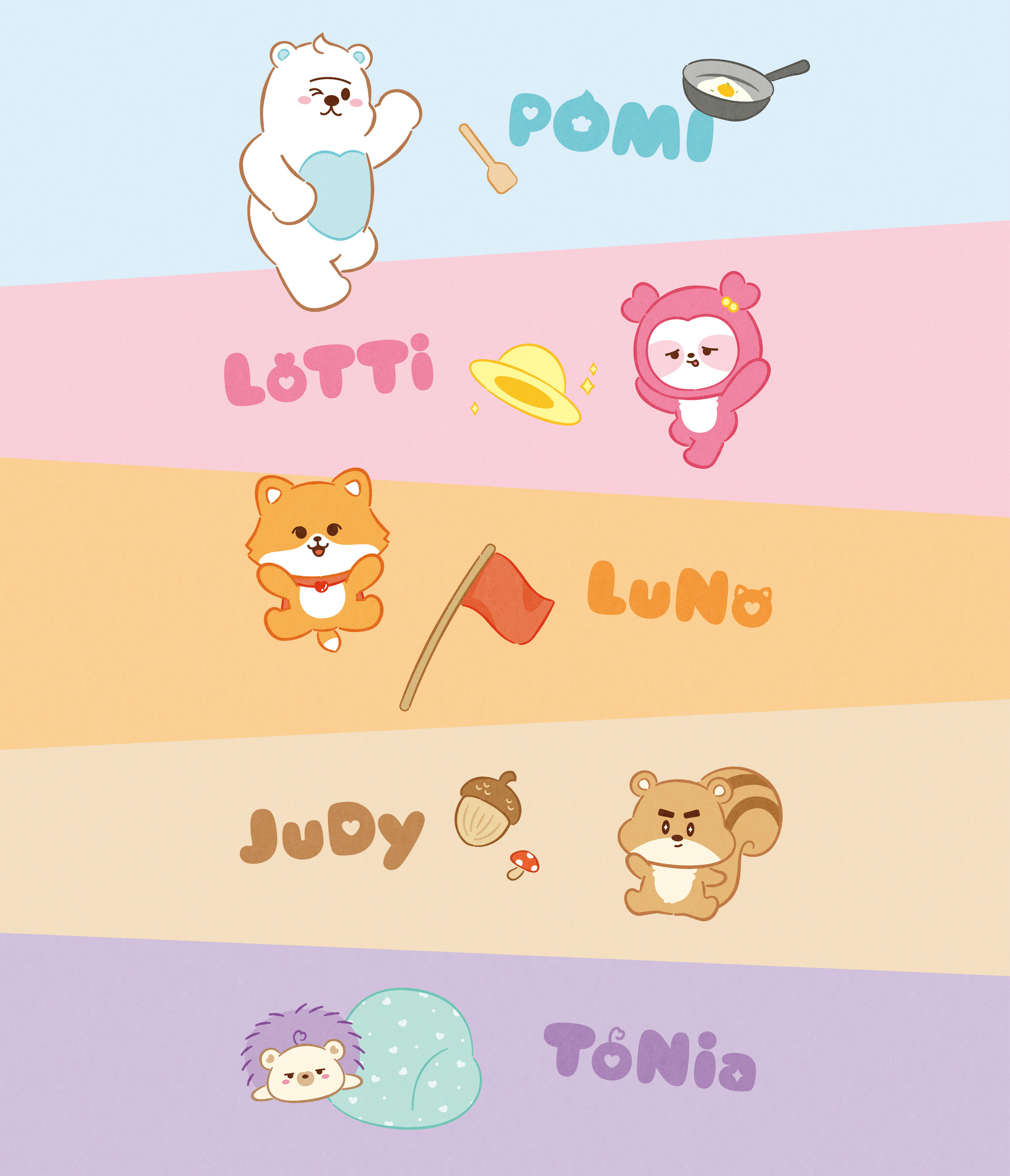 각 캐릭터는 고유의 개성과 스토리를 담아 누구나 공감하고 애정을 느낄 수 있도록 탄생했습니다.
